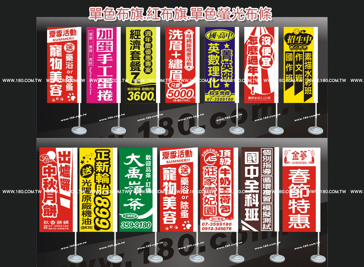 * 交期 3個工作日 * 印刷 不可漸層, 需要漸層請參考彩色布旗區 * 配件 如需水泥底座+150自取 * 配件 如需木頭旗桿與橫鐵+100自取(不分售) |